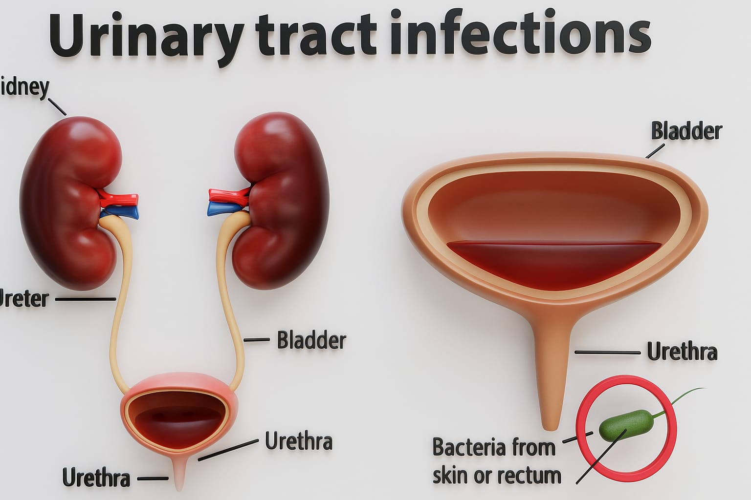 A urinary tract infection (UTI) is an infection in the urinary system, most commonly caused by bacteria entering the urethra and multiplying in the bladder.